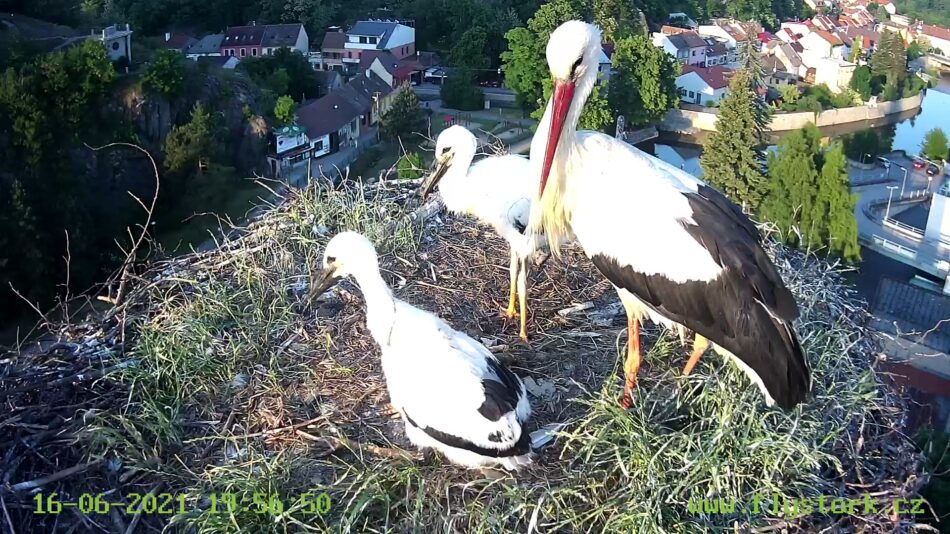 Čápi z Třebíče mají tisíce fanoušků. Dění v hnízdě přenáší kamera
