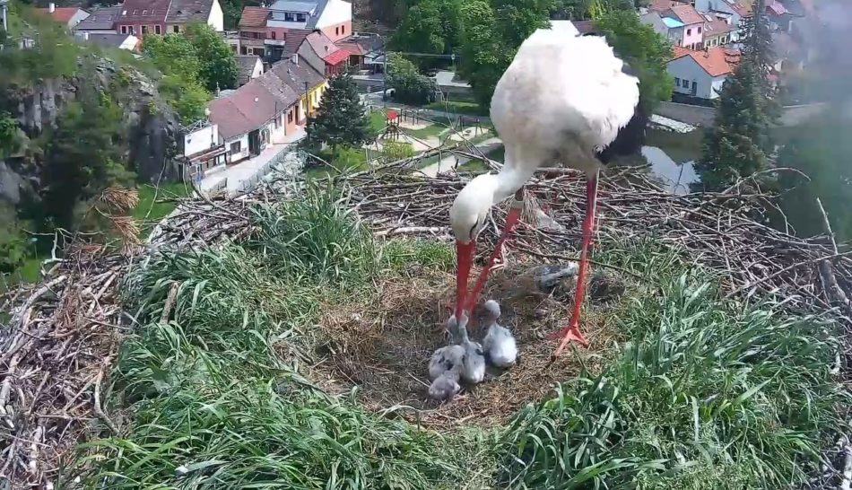 K velkému překvapení došlo v pondělí večer, kolem půl osmé. S odstupem 5 dní, po vylíhnutí prvních dvou čápat, se vylíhlo mládě z pátého vajíčka. Všichni máme velikou radost. Malý Bojovníček se vyklubal na svět 🙂 a snaží se dohnat své sourozence. Aktuální počet mladých je tedy opět 4.