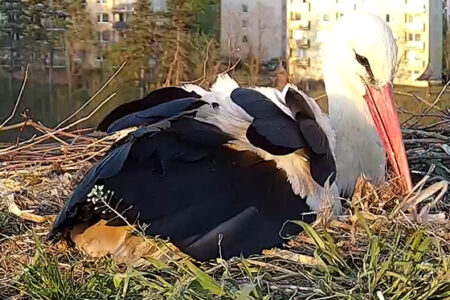7. dubna 2022 – vrací se na hnízdo Týna, po delším čekání na Toma, který se nevrátil, na hnízdo přilétá nový partner Tonda 14. dubna
